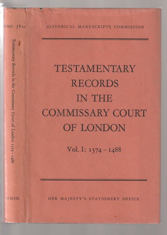 INDEX TO TESTAMENTARY RECORDS IN THE COMMISSARY COURT OF LONDON (LONDON DIVISION): VOL. I 1374-1488
