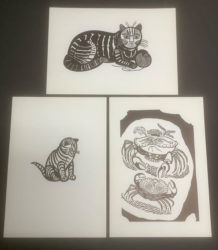 LIMITED EDITION of 200 copies A4 portfolio of brown card containing 6 sheets of titles and text, one original linocut of