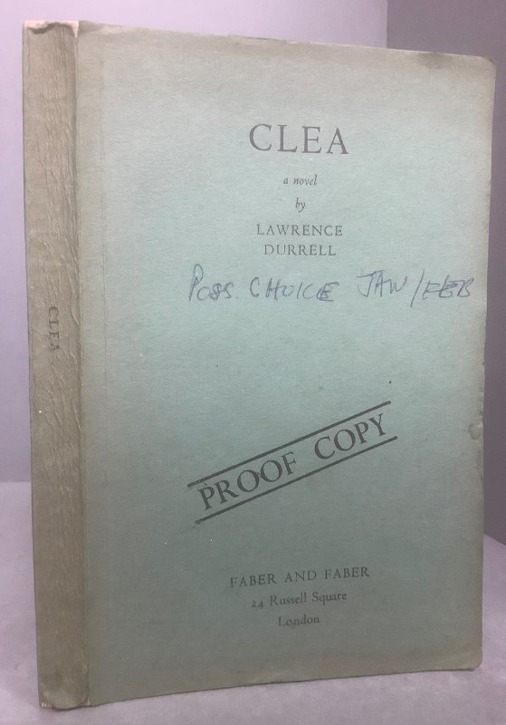 FIRST EDITION, PROOF COPY 8vo. softback with green card covers. 287pp. 'POSS. CHOICE JAN/FEB' handwritten in ink to front cover. No other markings or inscriptions. Spine rather creased and worn at top and base. Covers lightly soiled. A GOOD+ COPY.