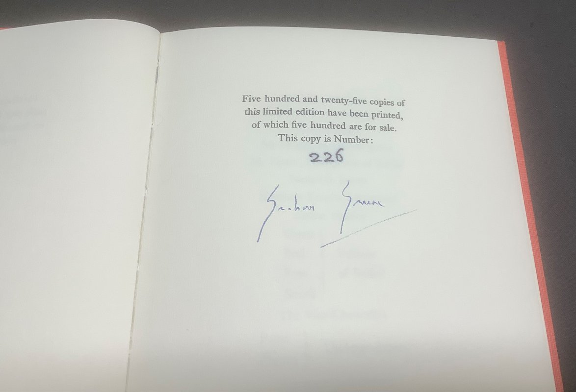 FIRST EDITION, SIGNED, LIMITED EDITION No. 226 of 525 copies. Small 8vo. red cloth hardback, gilt, with decorative title to upper board. 44pp. Signed by the Author in blue ink to Limitation Page. No other markings or inscriptions. A VERY GOOD COPY.