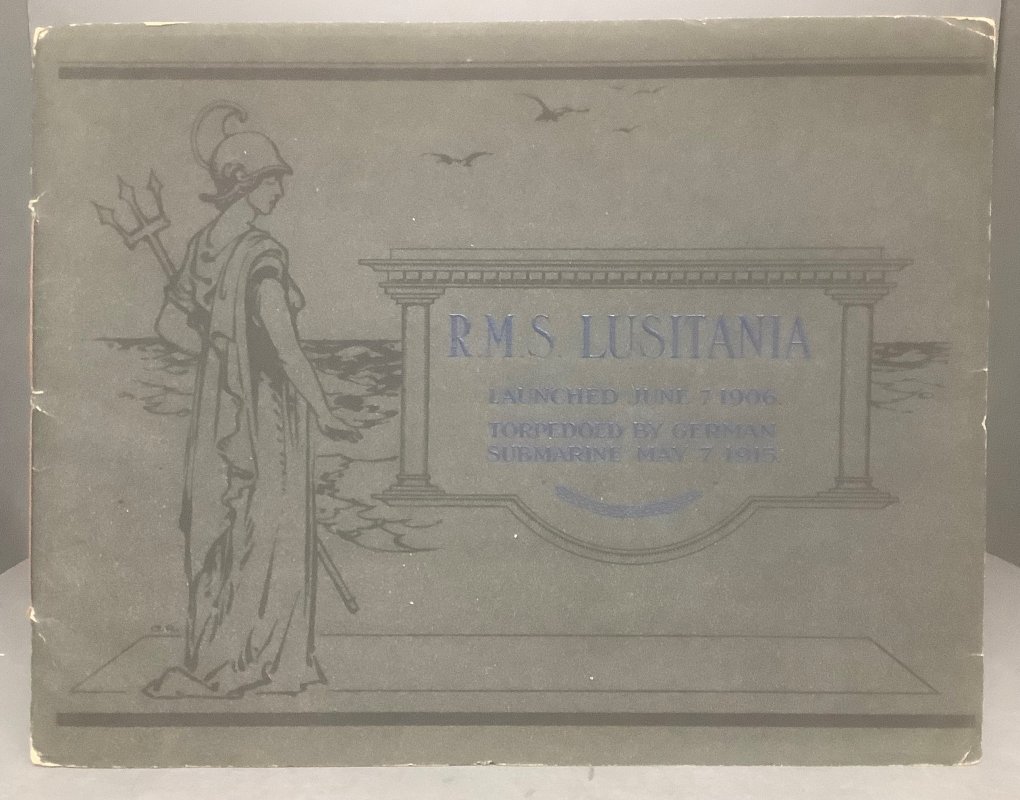 Landscape sewn booklet (approx.17.7 x 22.8cm) with dark grey card covers. 28pp. (unnumbered) with many b/w plates and a Transverse Section illustration. Highly emotive text by an unknown author of this memorial booklet, including illustrations of 'The German Medal struck to Commemorate the Crime'. Some foxing to inside covers and light wear to cover edges with a few tiny chips (please see photos). A VERY GOOD COPY of an extremely rare title.