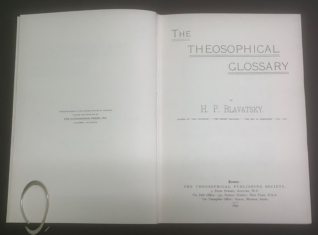 THE THEOSOPHICAL GLOSSARY A Photographic Reproduction of the original Edition, as First Issued at London, England:1892