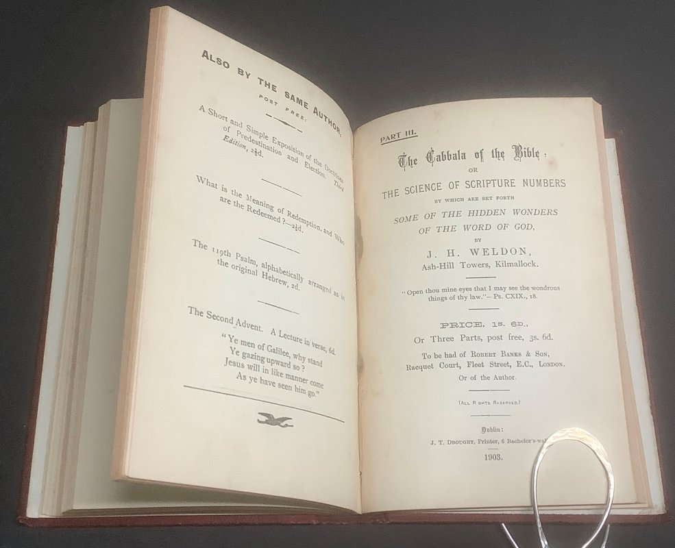 THE CABBALA OF THE BIBLE or THE SCIENCE OF SCRIPTURE NUMBERS by which are set forth Some of the Hidden Wonders of the Word of God (Parts I, II and III bound as one volume)