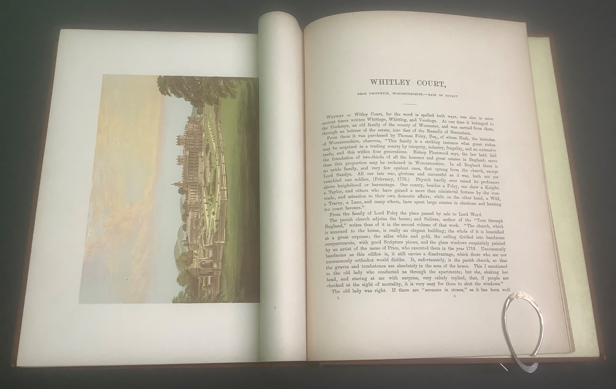6 Volumes, Complete 4to. brown decorated cloth hardbacks, highly ornate gilt spines and gilt and black upper boards with bevelled edges. a.e.g. Each volume has a tissue-guarded colour frontipiece and a colour vignette to title page plus 38 tissue-guarded colour plates, one for each residence listed. Pencil name and notes to ffep of Volume I and pencil name to ffep of Volume VI. Ink caption