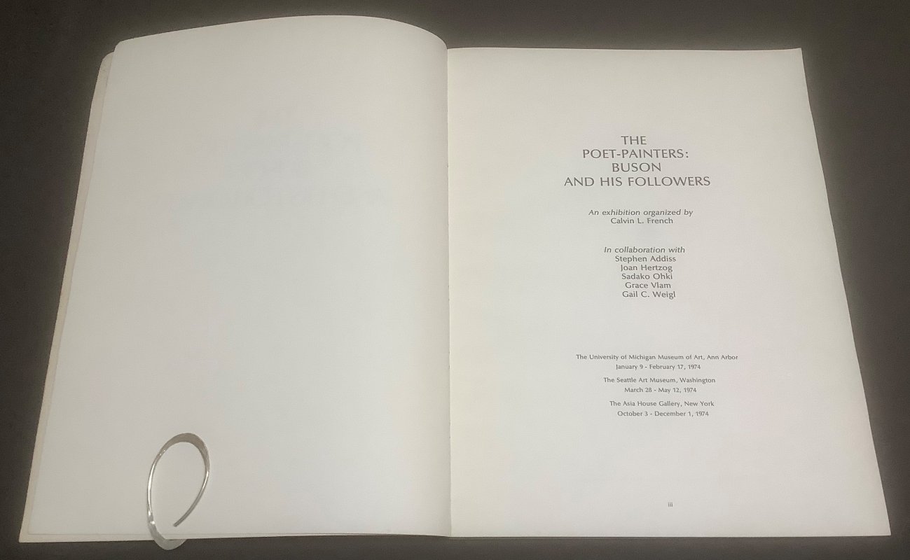 The Poet-Painters: Buson and His Followers. An Exhibition Organised by Calvin L. French.