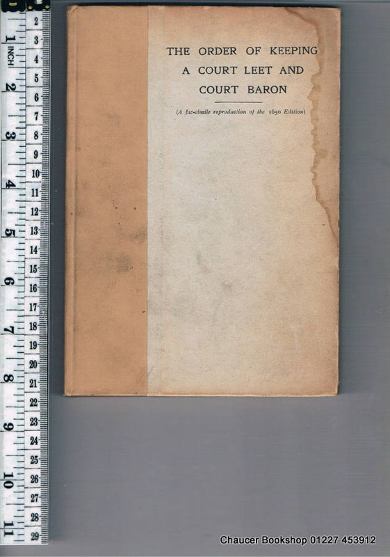 Facsimile Reproduction of the 1650 Edition. Manorial Society's Publications No.8. Original cloth-backed boards. 8vo., [vi], pp51. Ex-library bookplate to front pastedown. Slight handling wear to covers, othewise VG.