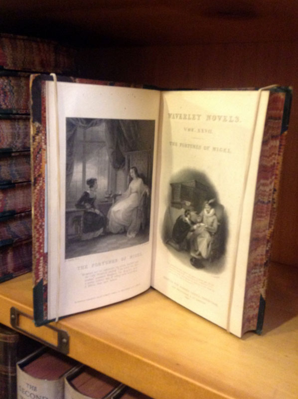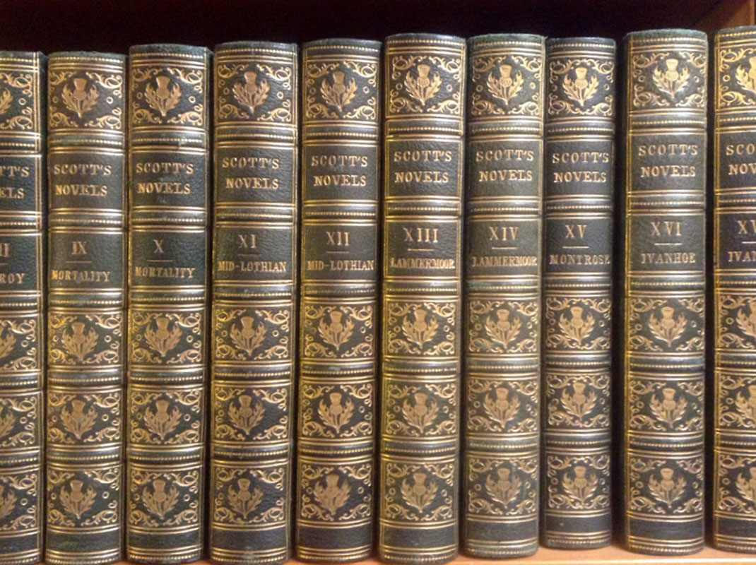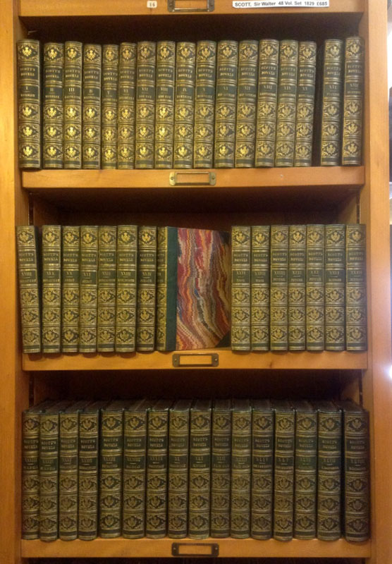 Complete set of 48 vols., 12mo. approx. 16.5 x 10.5cm). Half dark green 19th century morocco with gilt raised bands, thistle gilt tooling to panels. Marbled boards, edges and endpapers. Engraved frontispiece and title-page to each volume. The frontispiece and title page of Volume 9 (Mortality) are water stained, and one gather of Volume 38 (Talisman) is slightly sprung. Each volume has a plain bookplate with "Clara Ada Blake, the gift of her dear Papa, Ewell, 1865." pasted on to the front endpaper. Marbled boards are a little scuffed in places and there are a few tiny scuffs to morocco spines. Overall a Very Good Set.