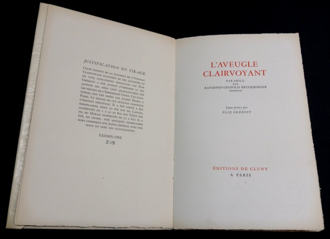 Limited Edition No. 208/850. 4to, pp 45, original wraps, fine, uncut and unopened in fine board chemise and slipcase, beautifully printed on fine wove paper. Illustrated with 5 full-page hors-texte original etchings by Grekoff. V. Good copy.