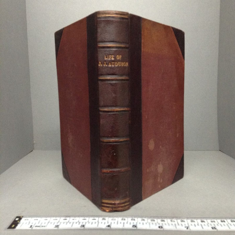 First edition 8vo. rebound in half dark brown morocco, raised bands, gilt, with clothbound boards. Albumen print frontispiece of a painted portrait of Audubon wearing a fur collared cape, vii, 366pp. Ex. Public Library with minimal markings. Overall a Good Copy.