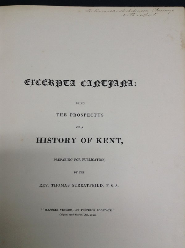 EXCERPTA CANTIANA: Being the Prospectus of a History of Kent, Preparing for Publication by the Rev. Thomas Streatfield, F.S.A